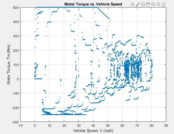 Motor Torque (Nm) Accessory Load(W) Battery Capacity (kWh) 4.854995434 600 7.65823932 10.79253495 600 15.92339911 16.72826768 600 24.18604381 22.66038735 600 32.44365908 28.58708883 600 40.69373212 34.5065686 600 48.93375243 40.41702538 600 57.16121257 46.3166606 600 65.37360891 52.203679 600 73.5684424 58.07628914 600 81.74321936 63.932704 600 89.89545219 69.77114146 600 98.02266016 75.58982487 600 106.1223702