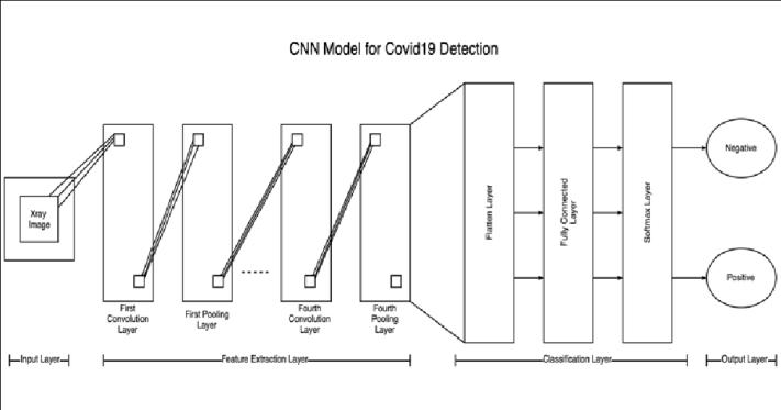 Fig.3:CNNmodelproposedforsystem. AmultiplelayeredCNNmodelarchitectureisdeployedfor the important feature extractions from the x ray images fortheclassificationofcoronavirusinfection.