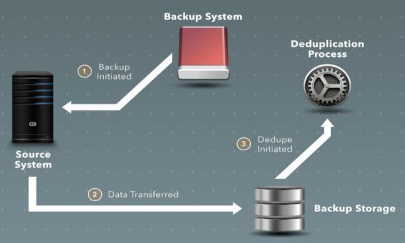 Source de duplication is in where the redundancies are removedbeforetransmittingthedatatobackuptarget This
