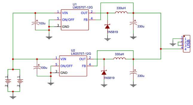 A5Vregulator needsatleast5Vtooperate,andweneed to disconnect the batteries at 2.5V So, since the 5V regulator is the only component the batteries are connected to, the circuit will open if the batteries fall below 5V as the regulator will turn off and produce no output.
