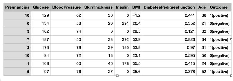 In the PIMA Indian Diabetes Dataset there are 9 attributes they are pregnancies glucose blood pressure skin thickness insulin bmi and diabetes pedigree functionageandoutcome