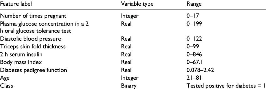 The dataset consists of 768 patients; 268 patients are diabetic and the rest of them are non diabetic. The outputvariabletakesā0orā1āvalues,whereā0āandā1āare depict the non diabetic instance and diabetic instance respectively.