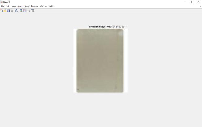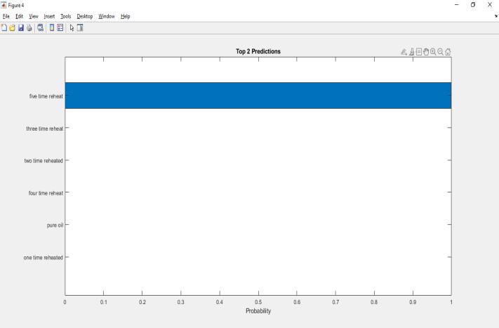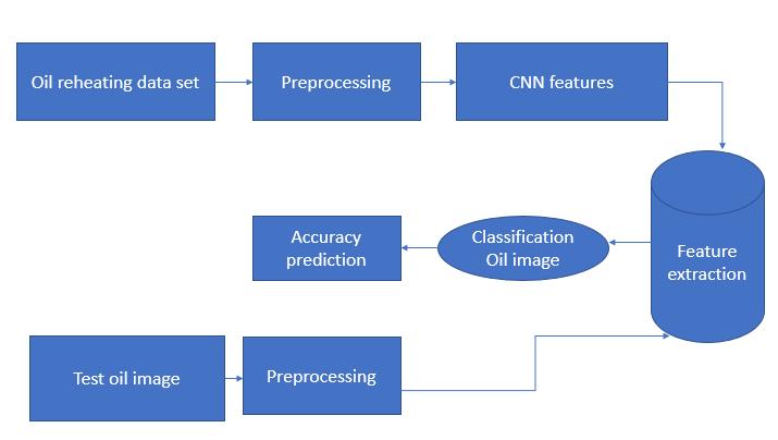 We present two analytical approaches for oil reheating inthesuggestedstudy,whichaddstomultispectralimaging underthefoodimageanalysisresearch.It'sfordetermining the reheat level and reheat system status. It's for two reasons: one, to calculate the reheat level count class, and second, to identify major oil chemical property changes. Machinelearningtechniqueisappliedforcategorizationof food quality condition. A novel application for MISs was provided to estimate reheat cycle count class and discriminationofsubstantialvariationsinthechemicaland thermophysical parameters during repetitive heating for frying oil. For high accuracy prediction, a convolution neural network scheme based method is used. The block diagramoftheproposedmethodisgiveninFig.1.