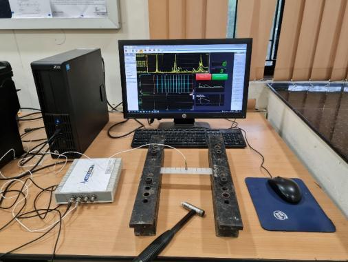 The modal analysis of the polymer composite is demonstrated by performing an experiment on a miniaturemodelofbagassereinforcedpolymercomposite beamwith200mminlength,25mminwidth,and4mmin thickness under cantilever end condition as shown in figure . The polymer composite beam is fabricated using DGEBA epoxy resin and hardener to carry out the experimental test. First, the bagasse reinforced polymer composite beam is fixed on the CFCF end condition followed byCFFF,thenthe data acquisitionsystem(DAQ) wasconnected to the computer system and the other end of the DAQ was connected to the accelerometer and the impact hammer. The impact hammer was employed to excite the bagasse reinforced polymer composite beam, and the sensor was mounted at the top layer of the compositebeam,whichcouldgettheresponsesignalsdue to the excitation. The DAQ was used to convert the responsesignaltofrequencyresponsefunctionandcanbe seeninthedisplayunitofDewesoftsoftware.