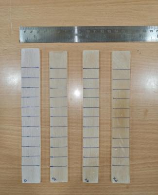 Four wooden molds of dimension 250x250x10 mm were use for casting the composites. The samples were casted with 0, 2, 5 and 7 % volume fraction of fibers. For different volume fraction of fibers, a calculatedamount of epoxy resin and hardener in the ratio of 10:1 weight was thoroughly mixed in a jar and stirred well. Here shear mixingisdoneinthisexperiment.Itisthenplacedinahot watertoremoveairbubblesthatgotintroduced.Afterthat mixture was poured in the mould and allowed to cure at room temperature for 24 hrs. After 24 hrs the samples were taken out of the mold and it is then cut into desired shapesforthecorrespondingtest.Thesamplesfortensile test and Vibration test were prepared in the following volumefractions: