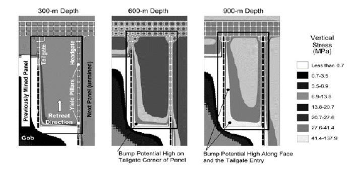 where loads can be distributed over a broader area. The figure 1 shows a significant increment in stress concentration and bump potential at the tailgate of mines usuallyatgreaterdepth.