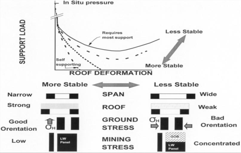 In general, roof supporting is done to create a stable rock structure. The factors governing the installation of roof supportinvolvesthepropertiesofrock,andthemagnitude of stress distribution. To study the strata behavior in undergroundlongwallmines,aconceptsofGroundreaction curveisestablished.Thiscurveisdefinedastherequirement ofallpossiblesetofloadstoachievemaximumstability.The groundreactioncurvedependsontherockmassquality,the