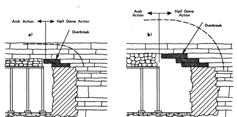 Figure5andFigure6showsthehowtheworkingphaseand thesupportedroofisinfluencedbythedistanceontheover break in closely jointed, horizontally stratified rock. The smaller this distance, the smaller is the quantity of rock which is likely to drop out of the roof when the round is fired.