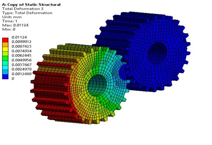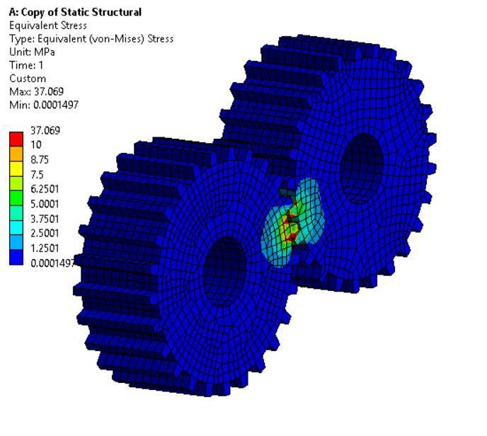 3. Hence, as a result we got maximum total deformation=<<0andmaximumequivalentstress obtained was 37.069 MPa which falls under the yieldpointofthegear.