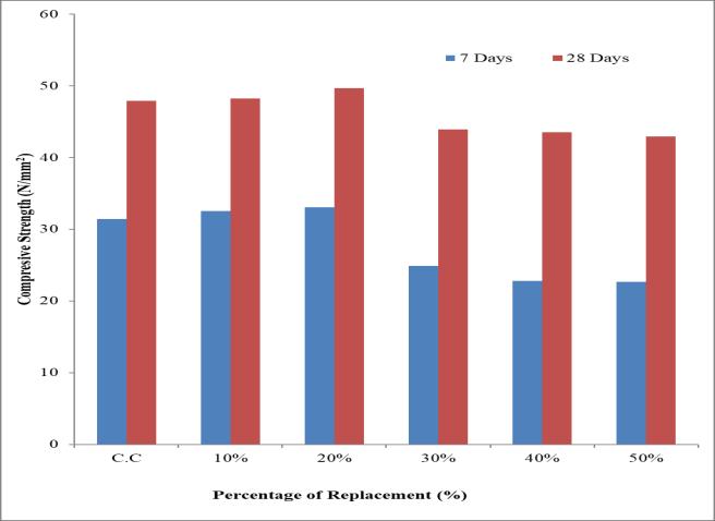 Itwasobservedthatfor10%and20%sandreplacement thecompressivestrengthwasincreasedandfor30%,40%, 50% sand replacement is was decreased, when compared withcontrolconcrete.