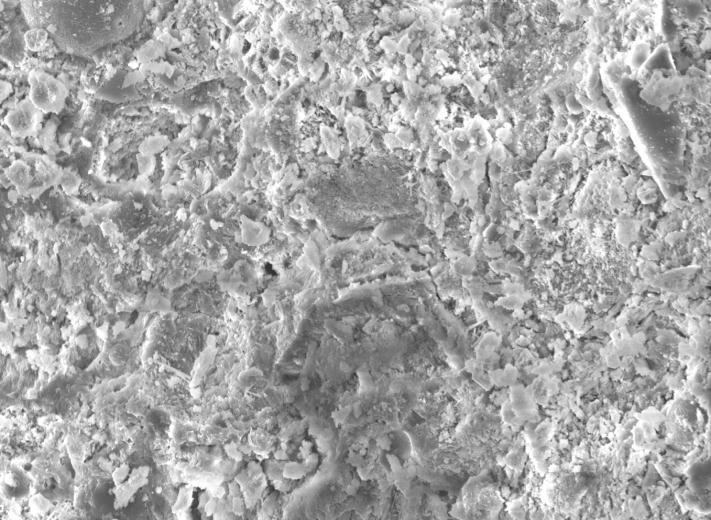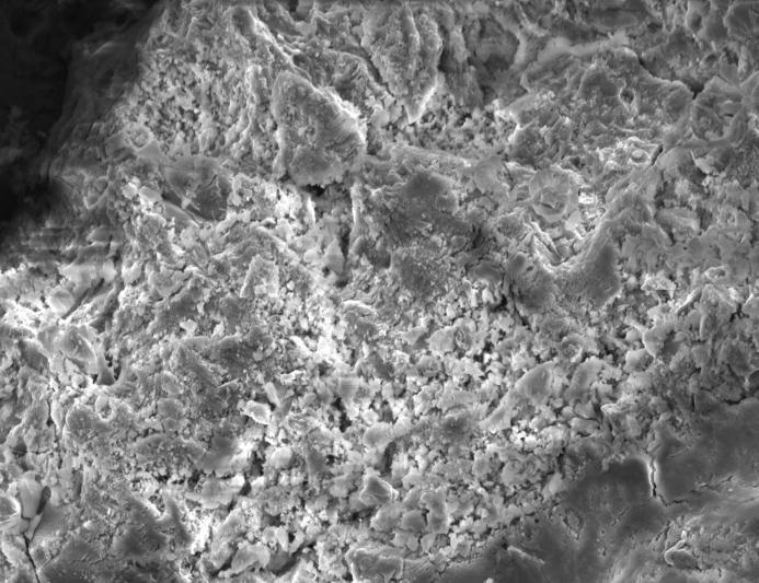From Micrograph Figure, shows that voids in mix are clearlyvisibleinthemicrograph.TheC S Hgelcouldnotbe seenatmanyplacesinthemicrograph.Themostimportant inferencefromtheimageisthatthepasteiscrumbling,as theamountofreplacementgoessohighinthissamplethat theequilibriumfallsandleadstolowerstrength.