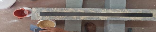 MixVCOBONDEPBL 5920partsAandBwithaproportion of1:1/2.Addhalfthebagoffillertotheabovemixtureand stir thoroughly. Apply this putty over the beam bottom to level the surface. Mix VCOBOND EPF 5910 parts A and B with a proportion of 1:1/2. Add half the bag of filler and stir thoroughly. Apply this putty over a surface to paste carbon laminate. Paste carbon laminate having a size of 900 x 50 mm over putty at the centre of the beam. Cut carbon fibre as per the required size. Mix VCOBOND EPB 5160 parts A and B with the proportion of 1:1/2. Apply this mixture to the beam bottom and sides of the beam withthehelpofarollerorbrush.Applycarbonfibretothe mixture,finelyremovingallwrinkles.Reapplythemixture to the carbon fibre. The surface should be flat with no air bubbles.
