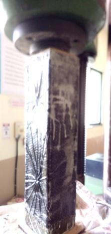 Themouldsofthecolumnhavealength of700mmwitha cross sectional dimension of 150mm x 150 mm are prepared from wooden planks. For the column two identical moulds are prepared. The column has 4 bars of 12mmØbarsandforstirrups,8mmØbarsareprovidedat a spacing of 140mm c/c. The columns were cast for the M30 grade (1:0.75:1.5). Two columns were cast, one as a control specimen and the other one for retrofitting. Columnswerecuredfor14days.