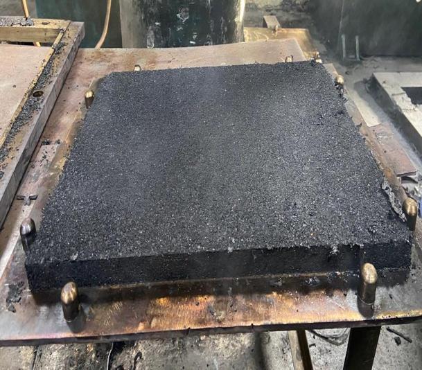 After reviewing most possible solutions to reduce the wasteofrubbertires,andmostoftheapplicationsusedto reducetheimpactofthisproblemontheenvironment.Most of the previous researches in this field used additional percentages of natural rubber, but this resulted in an obvious increase of the cost. Previous researches also showedthatonlyonesizeofrubbergranulesisused,butthis had a negative effect on the mechanical properties. Therefore,thedecisionwastakeninthisresearchtoproduce a mixture of rubber granules of different sizes without addinganypercentageofnaturalrubber.Manyexperiments werecarriedoutbeforestartingtoreachtheequitableand homogeneousratios,theappropriatetemperature,andthe ideal pressing time and force. This is discussed and explainedintheworkmethodologyandshownintheresults