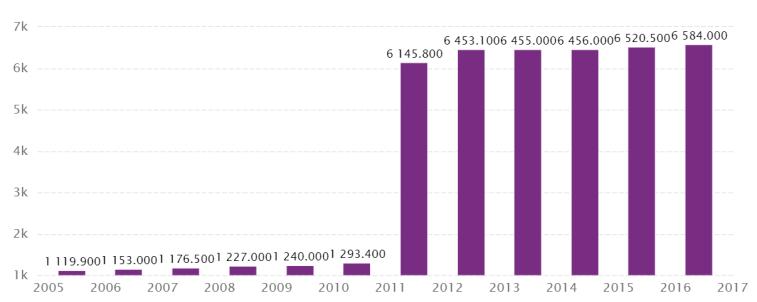 In Egypt, tire data was reported at 6,584.000 units in 2016. This is an increase from the previous number of 6,520.500for2015.IndustrialproductioninEgypt:tiredata is updated every year, with an average of 1,315.000 units fromJune1992to2016,with25observations.Datahitan all timehighof6,584.000unitsin2016andahistoriclowof 1,072.800unitsin2002.IndustrialproductioninEgypt:data ontiresarereportedbytheMinistryofPlanning.Thedatais classified in Egypt by Global Database Table EG. B005: Industrial production: annual [12]. Chart 1 shows tires industrialproductioninEgyptfrom1992to2016.