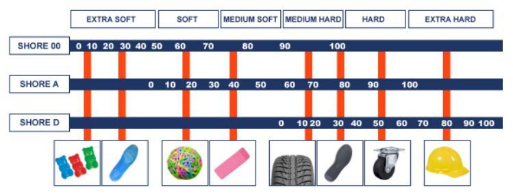 Higher numbers on the scale indicate more indentation resistanceandthushardermaterials.Asaresult,thehigher thematerialhardness,thelesstheconedeformsthesample. Lowernumbersonthedurometerscale,ontheotherhand, imply less resistance to indentation and softer materials; hence,themoretheconedeformsthesample,thelowerthe material's hardness [16]. The higher the durometer, the harderthematerial.Asshownin chart 6,mostofthevalues are between 60 70, this explains that the material is of mediumhardness,asshownin Figure 7