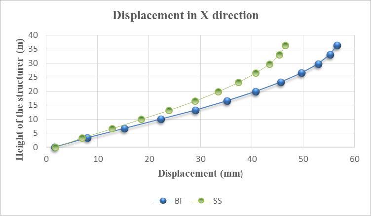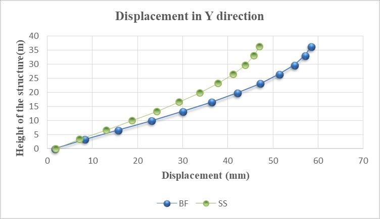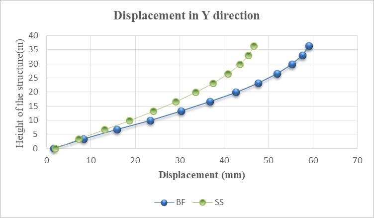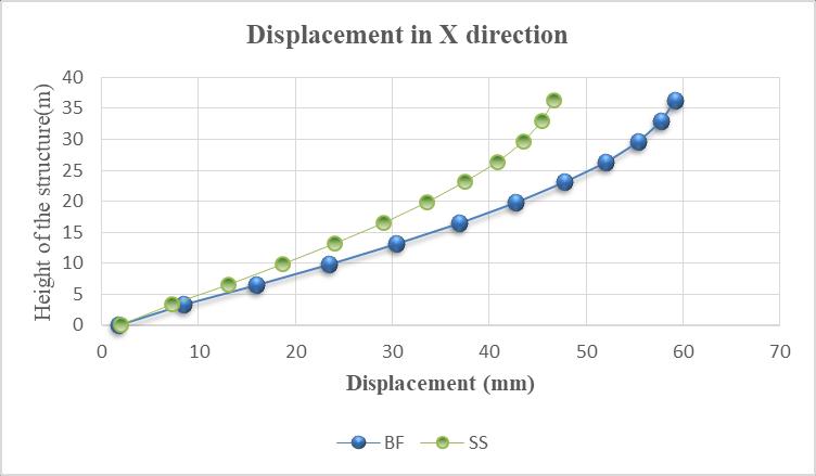 c)Flyashbrickmasonry:Storeydisplacementdecreasedby 19.63%incaseofequivalentstrutmodelinxandy direction respectivelythanstoreydisplacementforabareframe.