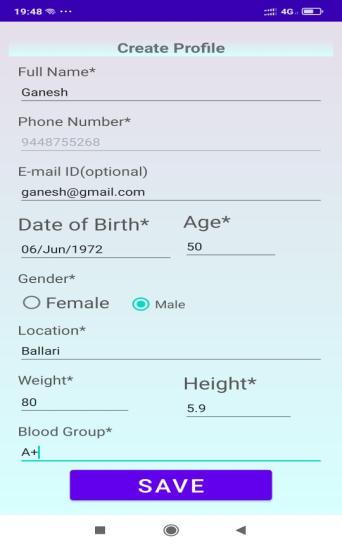 Create profile Module: ThismoduleiscreatedfortheDoctorandtheuser.Theuserisaskedtoenterthebasicdetails like Name, email (optional), phone number (which has been used for OTP generation), Date of birth, weight, height, blood group, location. In the Doctor Profile module, the doctor has to enter the details like Name, phone number, QualificationwithSpecialization.