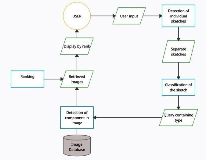 Abstract Sketchbasedimageretrieval(SBIR)isasub section of Content Based Image Retrieval (CBIR) where the user provides or can manually draw a drawing as an input in order to retrieve images relevant to the drawing given.ThebiggestchallengeinSBIRissubjecttohowwell ausercandrawasitentirelyreliesontheuser'sabilityto expressinformationinhand drawnform.Ourprojectaims to enable detection and extraction of multiple sketches given together as a single input sketch image whereas many of the SBIR models created take only a single input asanimageandgiveanoutput.Thefeaturesareextracted fromindividualsketchesobtainedusingVGG16whichisa deeplearningarchitecture,andclassifiedtoitstypebased on supervised machine learning using Support Vector Machines. Based on the image class obtained, images are retrieved from the database using an OpenCV library, CVLib , which finds the objects present in a photo image. Themodelanalysesthecomponentsintheclassofimages and based on a ranking system gives output of the image class.ThemodelconsistingofacombinationofVGG16and SVMprovides89%accuracy