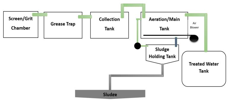 c) Based on plandesign a sewage treatment plant of 100 KLD capacity which contains tank or chamber named as bar screen chamber, oil and grease tank, collection tank, aeration chamber, treatment chamberandresidue(sludge)holdingtank.
