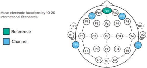 Figure 1: 10 20 system placement of the muse2 electrodes