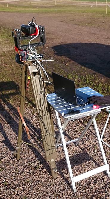 Whenthedronedetectoristurnedon,thesoftwareconsistsofamainscriptandfive"workers,"whichareparallelthreads madepossiblebytheMATLABparallelcomputingtools.Messagesaretransported inbetweenthemainprogramandthe employees using data queues. Using a background detector and a multi object Kalman filter tracker, the Fcam worker communicates the azimuth and elevation angles to the main program after establishing the position of the best tracked target1. The main software can then use the servo controller to drive the pan/tilt platform servos, allowing the IR and videocamerastoanalyzethemovingobjectfurther