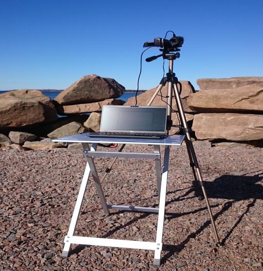 ASonyHDR CX405videocamerawasaccustomedcapturethesceneswithinthespectrum.asaresultoftheVcam'soutput isANHDMIsignal,ANElgatoCamLink4Kframedisagreeablepersonisemployedtosupplya1280x720videostreamin YUY2 format(16bitsperpixel)atfiftyframespersecondtotheportablecomputer.BecausetheVcam'szoomlenscanbe adjusted,thefieldofviewcanbemadetobebroaderornarrowerthanthe IRcam’s.TheVcamisavideocamera.issetto haveaboutthesamefieldofviewastheIRcam.