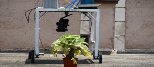 BeingMechanicalEngineers,wehavepushedourlimitsdeep in analyzing and learning programming, we have tried to eliminatetheusageofelectronicchipsfordatatransmission as we found an alternate method for it through laptop in wirelessmode. Finetuning theRGBof the pixelsin image and masking the disturbances and organizing the data in tabulated format by representing the same in graphical interpretation.Leafdiseasedetectionisachievedwithhigh success rate through image processing techniques, all the aboveproceduresandmethodsusedfortheprocessproves thatthisis the solutionfor smartagriculture. Thissystem hasthepotentialtohelptheuserincreasehiscropyieldby simultaneously maintaining his plants. Firstly, using this systemyoungfarmerscanquicklyacquirepracticalfarming knowledgeandthenusingthecollectedimagesandreferring to the previously stored image through image processing increasesconveniencealong withthe number ofpotential applications.Thissimpleyetinnovativedesignalsoenables experiencedolderfarmerstooperatethesystemeasilyand provides useful informed suggestions. The developed prototypeandsystemcanplayasignificantroleinsolving theNation’sagriculturalproblems.