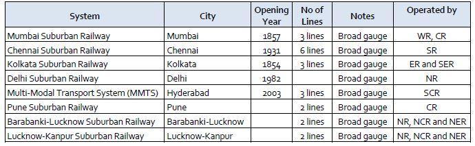 Table 3: Sub urbanrailsystemofvariouscities.