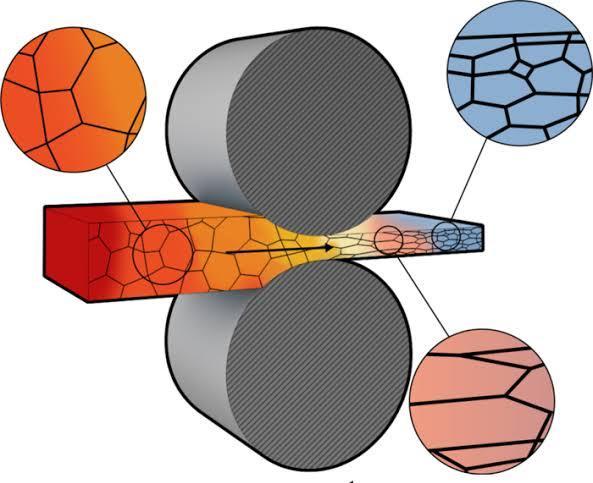 The non uniform original grain structure of substance consistsoflargecolumnargrainsgrowinginthedirectionof solidification. This is generally brittle with weak grain boundaries and may contain scars analogous as loss depressions,porositycausedbyfeasts,andforeignmaterial analogous as metallic oxides. Hot rolling breaks the grain structures and destroys the boundaries, giving rise to the conformation of new structures with strong boundaries havingsteadygrainstructures.
