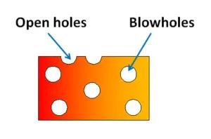 ii. Blow holes: it Blow holes i it is a large circular Cavitycreatesduetothegasofmoltenmetal. This typeofdefectcavityformsincopeorSurfacepartof mold