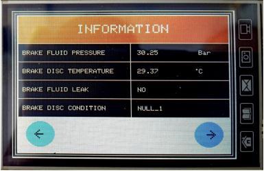 The interface screen displays real time data.And the dashboard unithas a buzzer. The buzzer will alert the driver if the brakesystemhasafailure.(Figure.8)showsvirtualinformationtotheend user.
