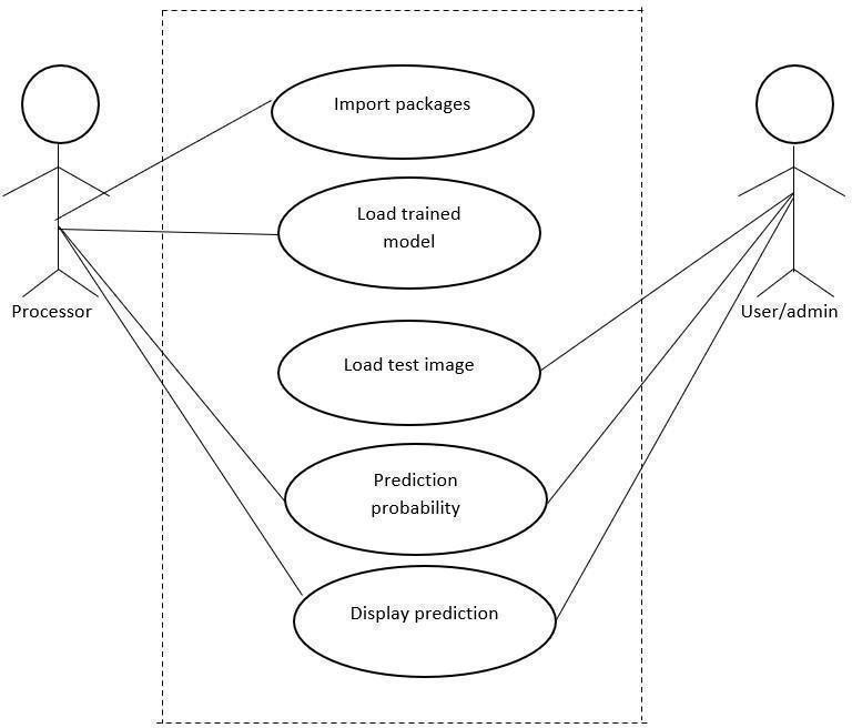 Fig 6 depicts the use case figure which represents the active performance of the system and the system functionality by using actors and use cases. In Unified modeling language, modeling with use cases is a core concept.