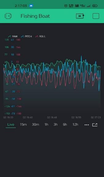 Wecreatedthecapsizingeventsothatwecanobserve the variation in the pitch, yaw, and roll values at the timeofdistress,weobservedthereisachangeinaxis whenthereisaturnoverofthefishingvesselandthere isalsoachangeinvaluesoffishingvesselmotion.When wecomparethechangeinthevaluesamongthethree motionspitch,yaw,androll,thereweobservedthereis awidevariationintherollmotionasshowninfig7So, wetookrollmotionasaprimaryvaluetodeterminethe capsizingeventofthefishingvessel.