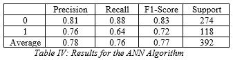 Exhibit machines that mimicked the brain's functions influencedthedevelopmentofneuralnetworks.Everybrain unitislinkedtoaslewofothers.Intermsoftheinitialstate effect of the linked neuronal units, links might be either enforcingorinhibitory.Asummingfunctionmightbeusedto unite the input values of each individual brain unit. This modelisutilisedinregressionandclassification,aswellas predictionandclustering.Therearetwoprimaryfactorsthat have a substantial impact on the performance of neural networkclassifiers.Thenumberofhiddenlayersisthefirst, andthevalueofthelearningrateisthesecond.Theresults ofthealgorithmareshowninTableIV.