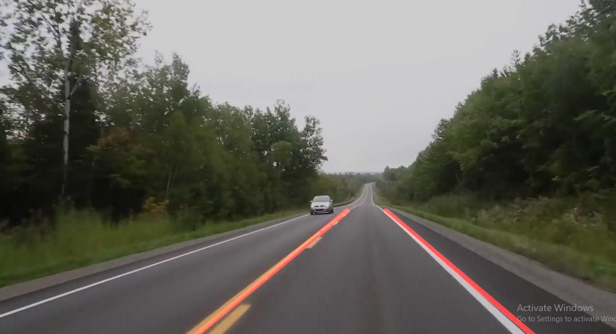weneedtoreadthevideofromthecamerainput,nextstepistoperformcannyedgedetectiononthereadvideoonevery pixel, this can be done by applying gray scaling to images first this turns the image into gray internally, and then the Gaussian smoothing, and blur methods are applied on the grayscale image then the actual canny edge detection is done, and the edges of the whole image are detected. The next step is to identify the region of interest (ROI) according to the requirementoftheproject,nextweneedtoapplyHoughtransformsintheROIafterthatwehavetofindtheaverageslope and extrapolate the lane lines in the Hough transforms to apply the image on the video to detect the lanes in the input video