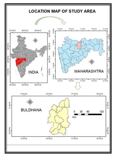 BuldhanadistrictisastudyareainthewesternVidarbha regionandatthenorthernendofMarathwada.Thisstudy areaisspreadinlatitudes19°51′to21°17′inNorth,75°57′ to76°59′longitudestowardsEastanditcoversabout9670 km2 of India. In 2011, the population of Buldhana was 2,586,258 people. Normal rainfall inthe districtisaround 713mm.Thenetirrigatedareaof1.55lakhhaaccountsfor 21.95 percent of the net sown area of 7,06,300 ha, with 1,17,100 ha being cultivated multiple times. The cropping intensity is 116.58%. Ground water (well irrigation) provides irrigation facilities to about 63,689 ha which is 41.09%ofthenetirrigatedarea.Whilecanalnetworkand other surface water sources including rivers provide irrigationfacilitiestoabout91280hawhichis58.91%ofthe net irrigated area The district's main source of income is agriculture.23%oflandholdingsarecategorizedassmall thatincreasesthevulnerability.