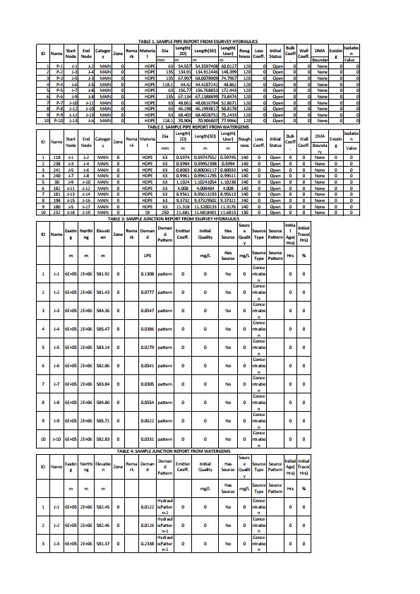 TheauthorhasstudiedcomparativeanalysisbetweenWatergemsandESurveyHydraulics. AtypicalDMAisconsideredforcomparativeanalysis.TheDMAconsistsofthreewardsandthepopulationdetailsareshownin Annexure1.