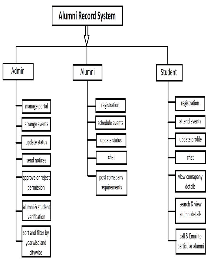 2.Alumni: Alumniitselfregisterintosystem&thenverifyby admin and after that access all the functionality of the system.