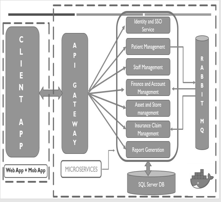Rabbit MQ: Rabbit MQ is a message queuing application thatisalsodescribedasamessagebroker.Messagebrokers operateasago betweenformultipleproviders.RabbitMQ allowsservertorespondtorequest.Forex.WhenAccount andBillingserviceaddthepharmacybilltoinvoice,message is sent to patient management service and Patient managementservicesendsnotification/testmessagetoend user.