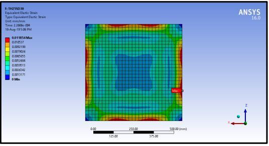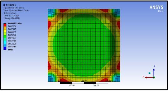 Equivalent Elastic Strain developed in ferrocement panels25mmthicknessarenearly58.63%morethan stresses developed in 18mm thickness ferrocement panel.