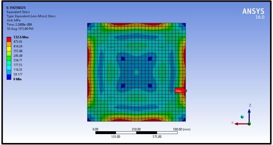 Equivalentstressesdevelopedinferrocementpanels25 mm thickness are nearly 46.97 % more than stresses developedin18mmthicknessferrocementpanel.