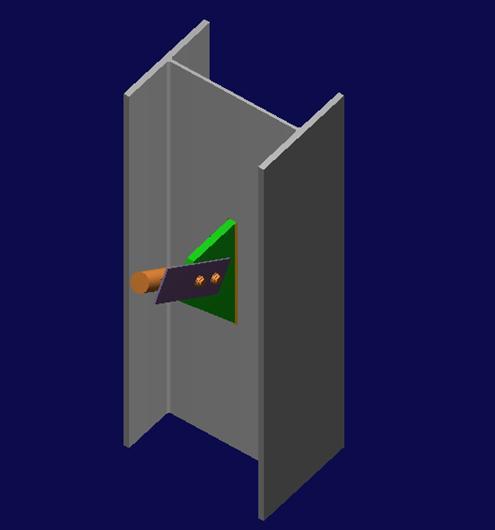 Holetype : STD Holetypeongusset : STD np: Numberofrowsofboltslongitudinally: 2 nc: Numberoflinesofboltstransversely: 1 sp: Longitudinalboltspacing: 70mm ae1: Longitudinaldistancetoedge: 45mm ae3: Transversedistancetoedge: 45mm Material : E250A t: Thickness: 5mm Setback : 20mm Weld : E49 Weldsize : 5mm Weldlength : 100mm Weldclearance: 5mm