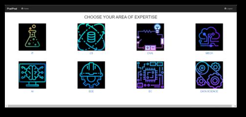 Fig 11showsthe expertisepage. Thispageletstheuser enterhis/herareaofexpertise.Oncetheselectionisdone, theuserisredirectedtoapredictionpage.