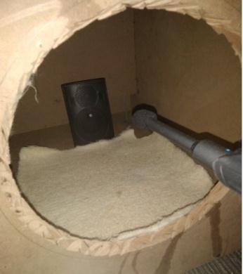 The experimental setup is shown in fig We used a loudspeaker system, a microphone for generating sound signals,asoundpressurelevel meter,andareverberation room chamber of volume 64 cubic feet (1.81228 m3). The