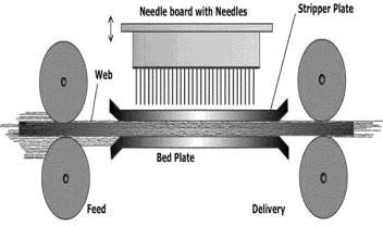 Nonwoven fabrics have micron and submicron holes, making them ideal for sound absorption21. Many elements, such as fibre characteristics, process parameters, and physical parameters, can increase the sound absorptive capabilities of nonwoven fabric22.The followingprocesseswereusedtoprepareneedle punched nonwoven fabric. The lab model blow room machines from Trytex were utilised to make homogenous mixing and cleaning in the first stage. To increase the blend's homogeneity,thefibremixeswereranthroughtheopener twotimes.Blendedfibreswerecardedinthesecondstage withalabmodelcardingmachinetoremovedirtparticles, align fibres, and generate webs. The needle punching process is used to create nonwoven fabric consolidation. This approach involves repeatedly piercing through the fibrewebwithanarrayofbarbedneedlestomechanically connectfibres.
