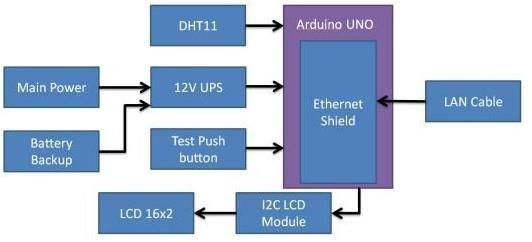 Keywords: Arduino UNO, ESP01 Wi Fi module, DHT11 Temperture and Humidity sensor, LCD16x2 , Ethernet.