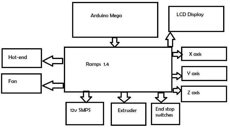 2. Our aim was to make low budget, affordable, 3d printer. In this proposed system we used Arduino mega, RAMPS,Nema17steppermotorsforcontrollingx,yandzaxiswhichareconnected.