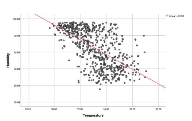 Fig 5.3.2 Scatter plot between temperature and humidity