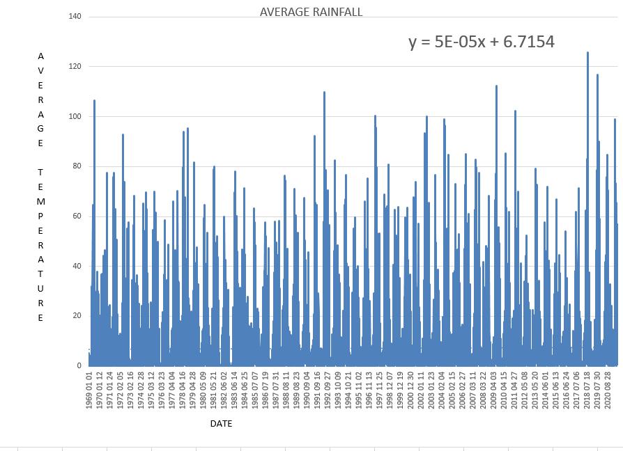 The trend line of rainfall time graph indicates that there were only negligible variations in rainfall in the past fifty years.